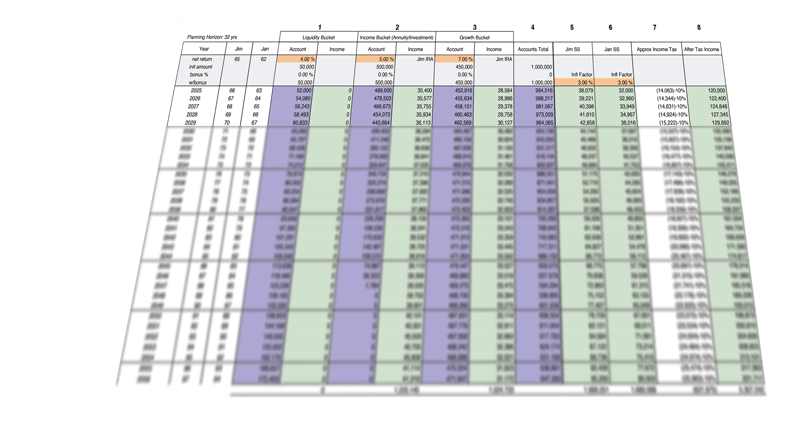Imagine seeing your entire financial picture on one clear page — your income buckets, investments, Social Security, and even your after-tax income — all working together in harmony.